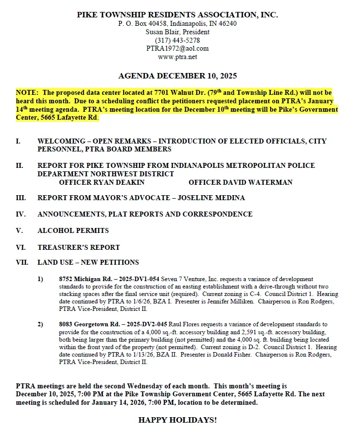 At our January Board meeting (which is open to the public) a preliminary proposal was presented. The location would be 8751 Michigan Road, which is the old Chase Bank. The Board does not vote on Preliminary proposals. Notices had not been given out to the surrounding businesses (which is required). Preliminary proposals are made to the Board to “test the water”. The Board seemed favorable to the proposal.