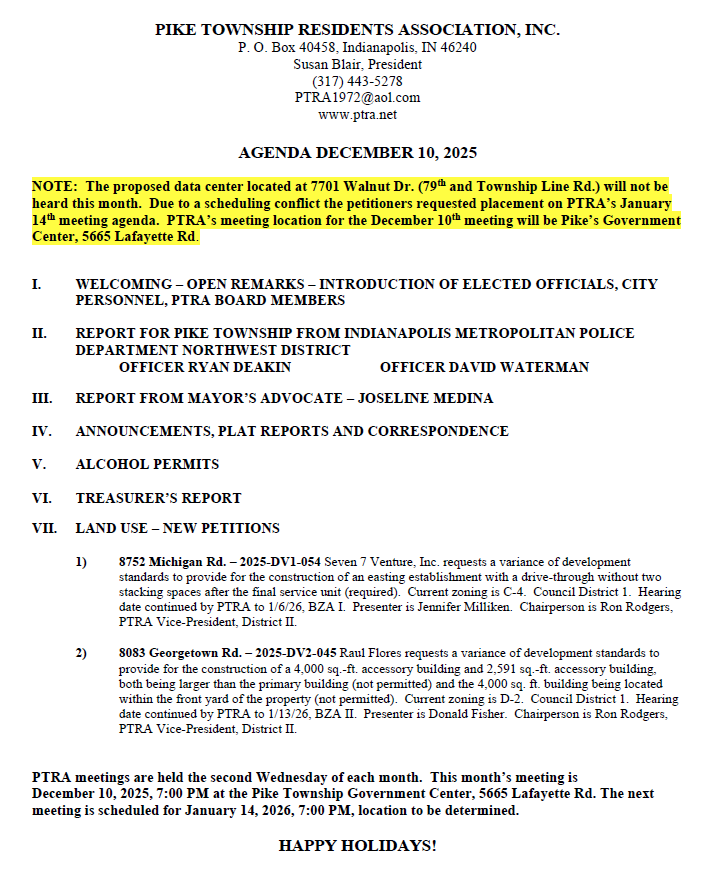 December 2025 Agenda — No Comments
