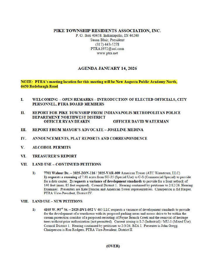 Agenda For January 14th 2026 Meeting PTRA.net Posted on January 12, 2026 by adminJanuary 12, 2026 Click here for agenda in PDF form